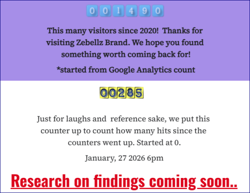NOTE: The Zebellz Brand has done little to no advertising in all of its 5 years online.